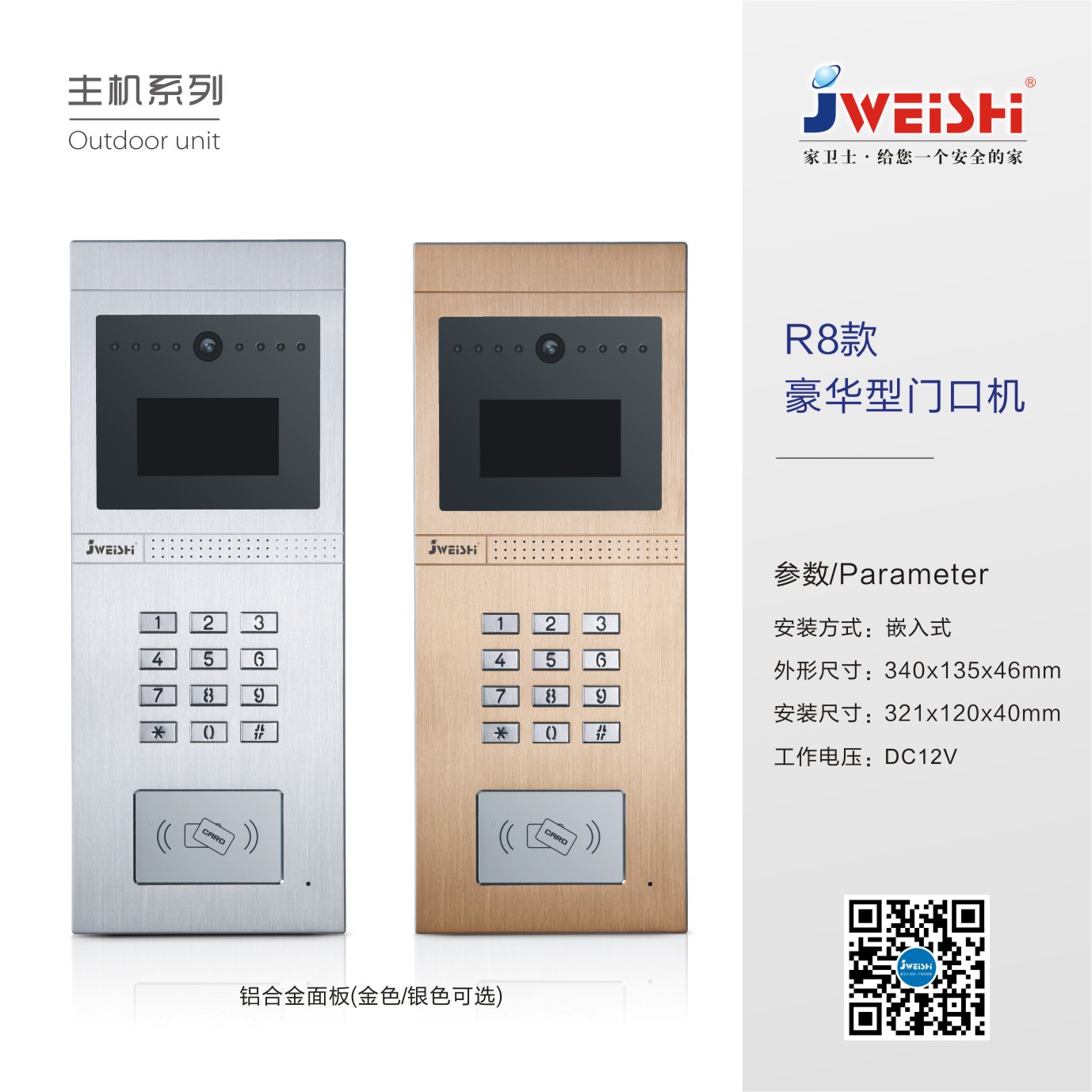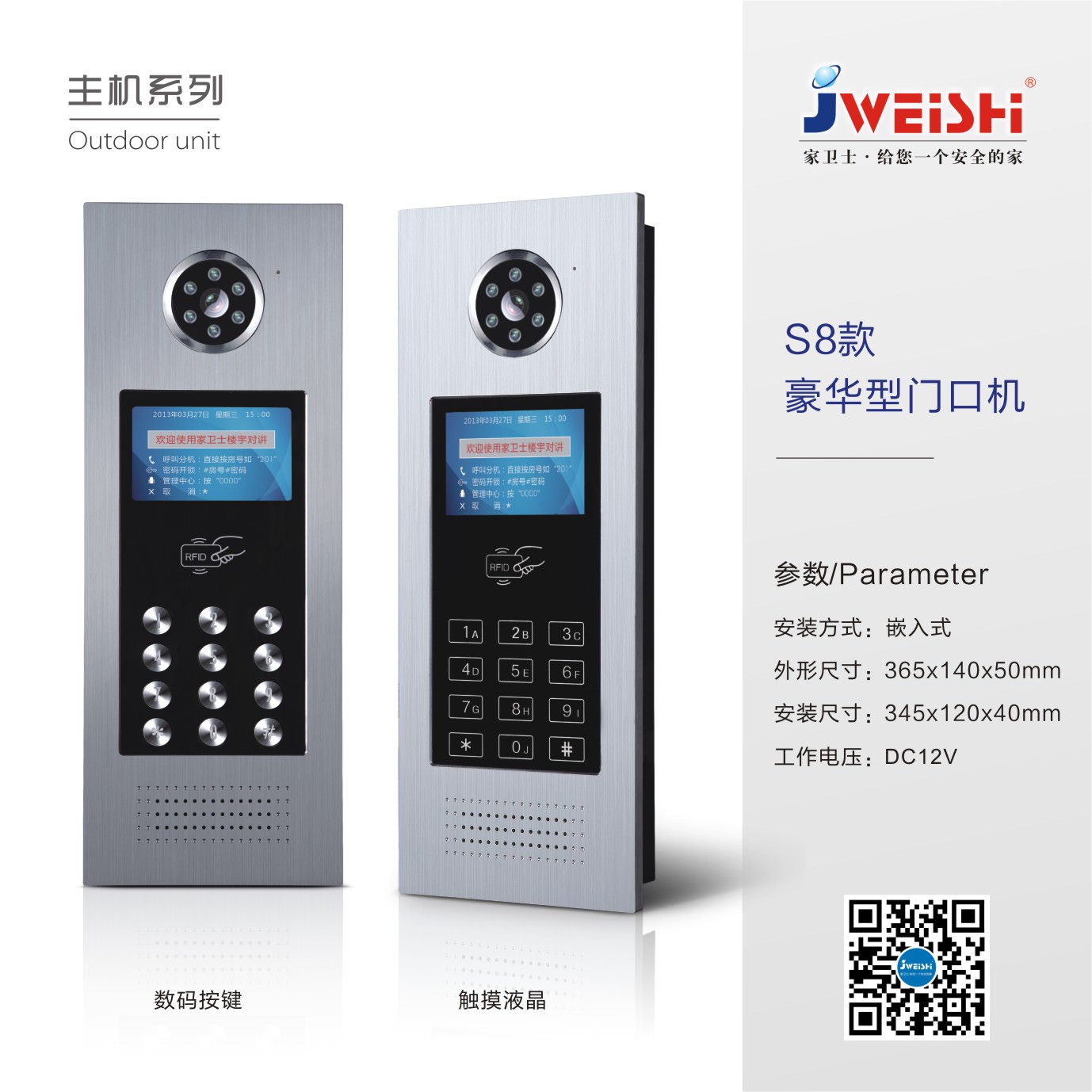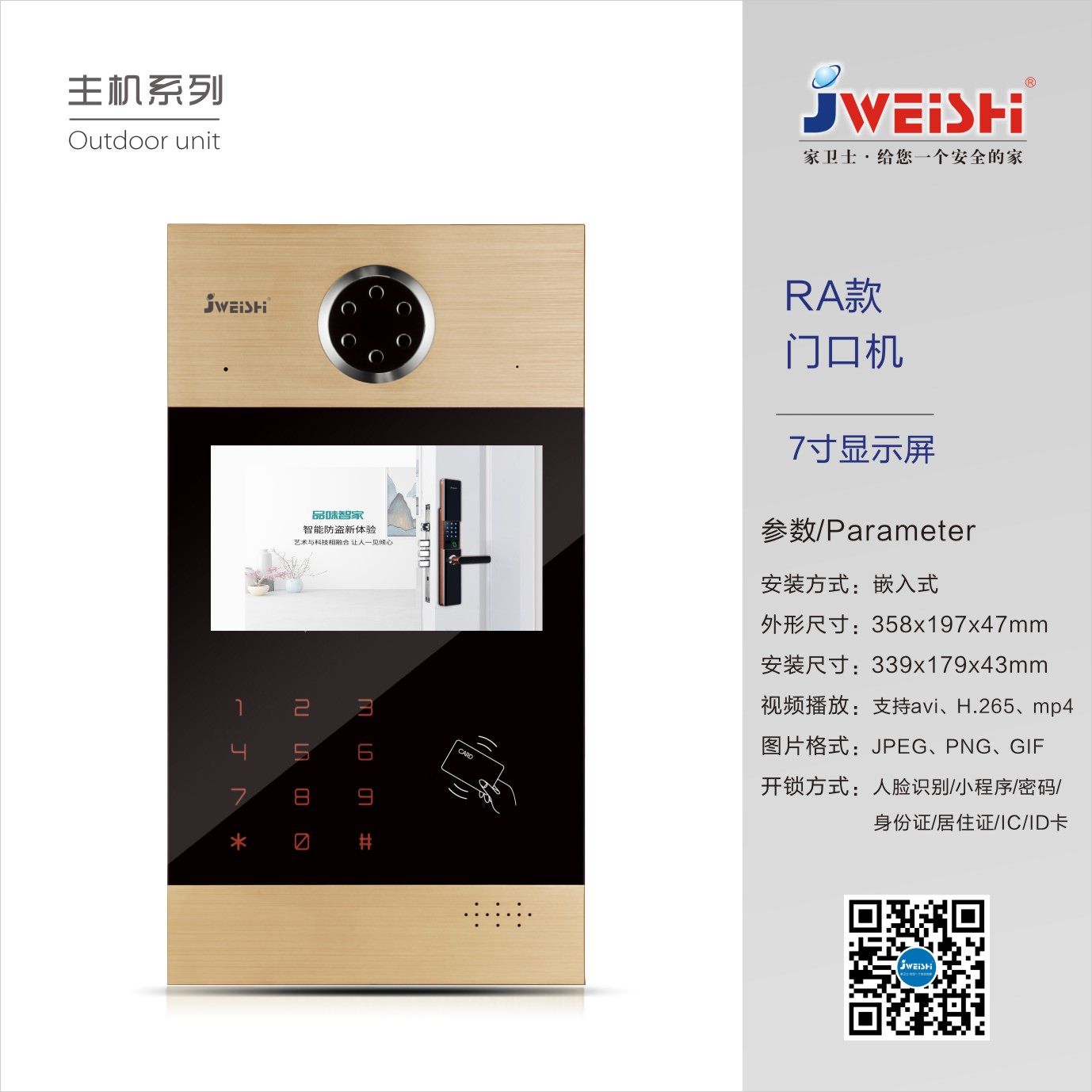 百万像素高清摄像头;嵌入式安装方式;表面尺寸:366*137*15(mm);安装尺寸:342*122*40(mm)通话时间90秒,(按0-9键可延长通话时间)