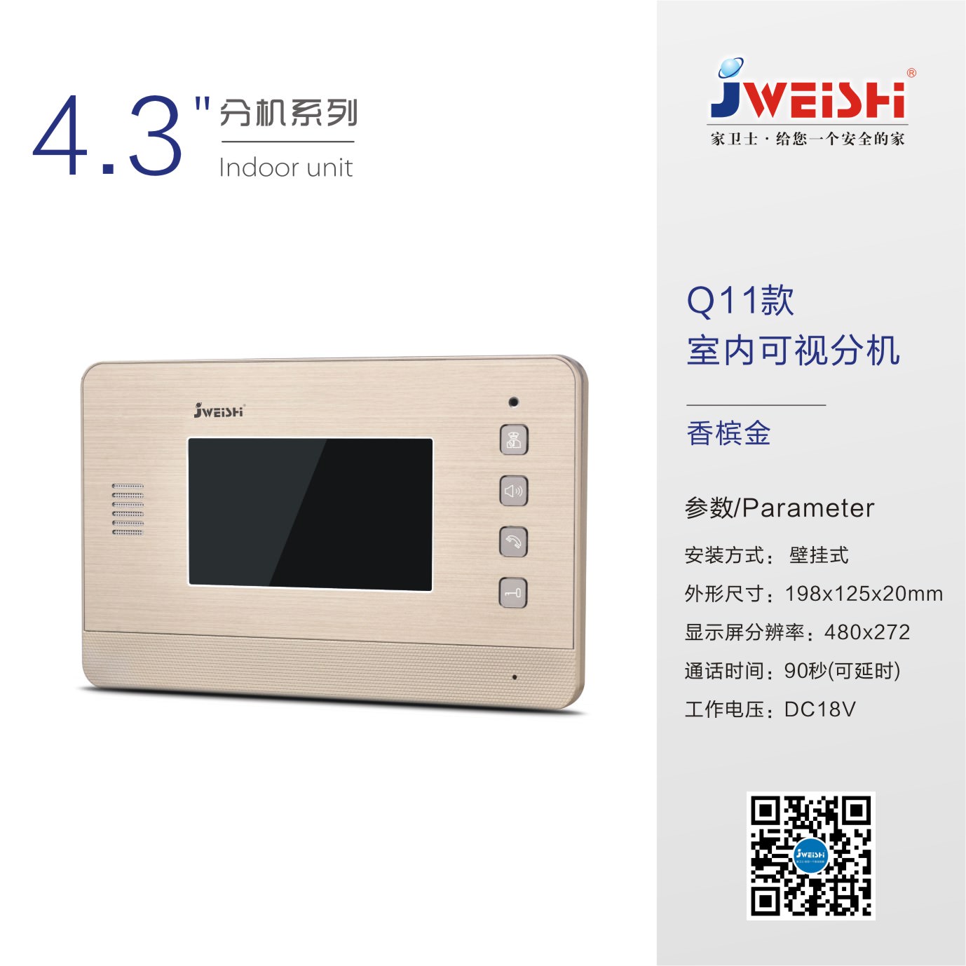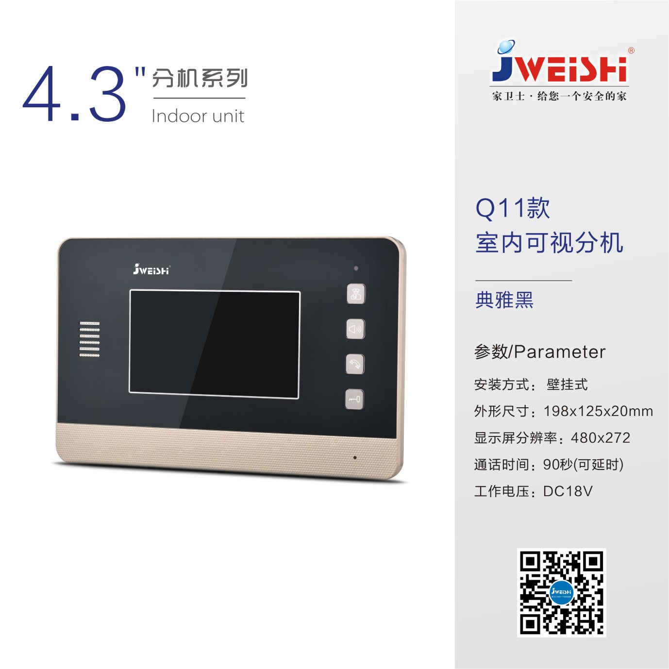 显示屏:4.3寸TFT显示屏分辨率:480*272安装方式:壁挂式 外形尺寸:190*117*10(mm)振铃时间:30秒通话时间:90秒(可延时)