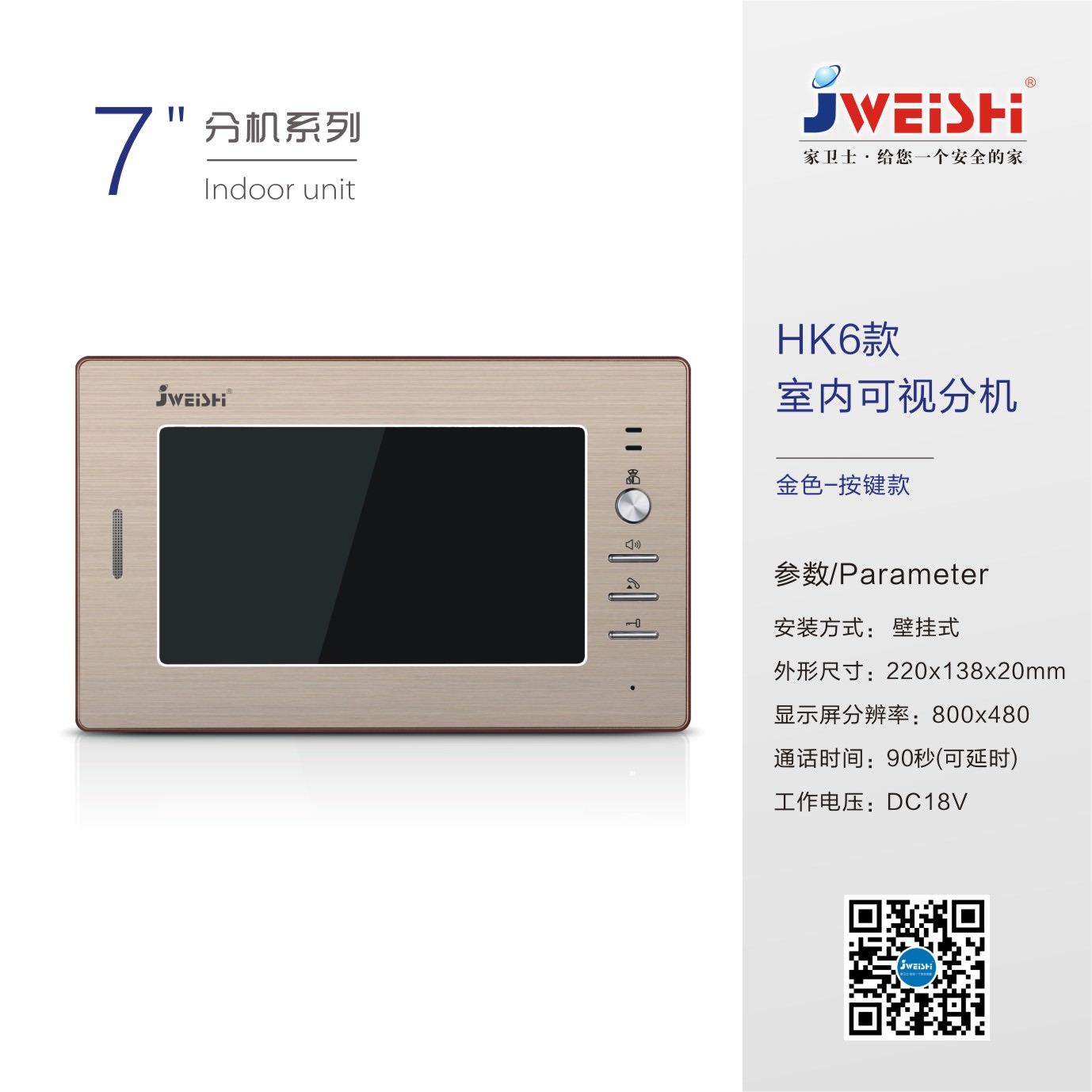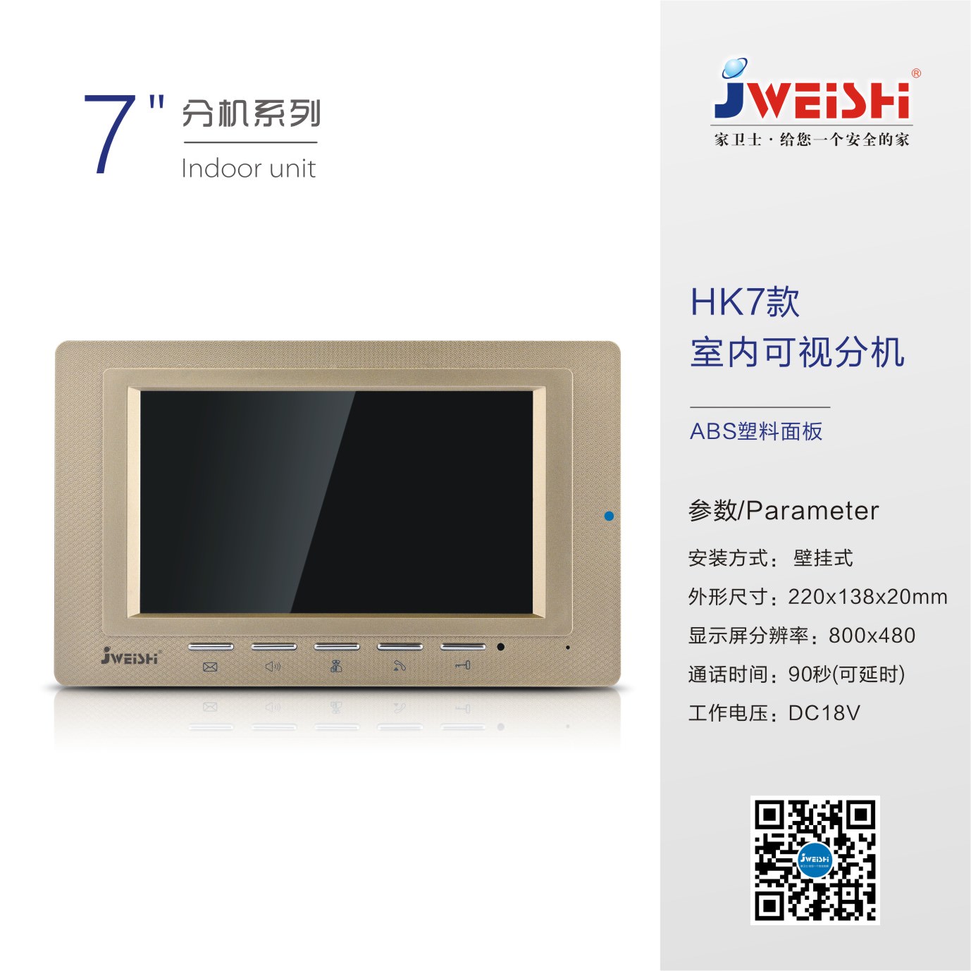 显示屏:7寸TFT显示屏分辨率:800*480安装方式:壁挂式 外形尺寸:205*134*23(mm)振铃时间:30秒通话时间:90秒(可延时)