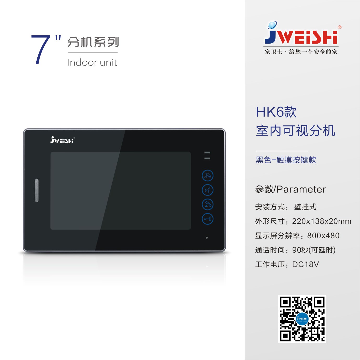 显示屏:7寸TFT显示屏分辨率:800*480安装方式:壁挂式 外形尺寸:230*150*23(mm)振铃时间:30秒通话时间:90秒(可延时)