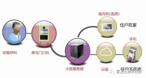 3、服务器实现音视频通话,实现业主、物管远程对门口机开门;实现室内机与业主之间的智能家居的管理与维护;